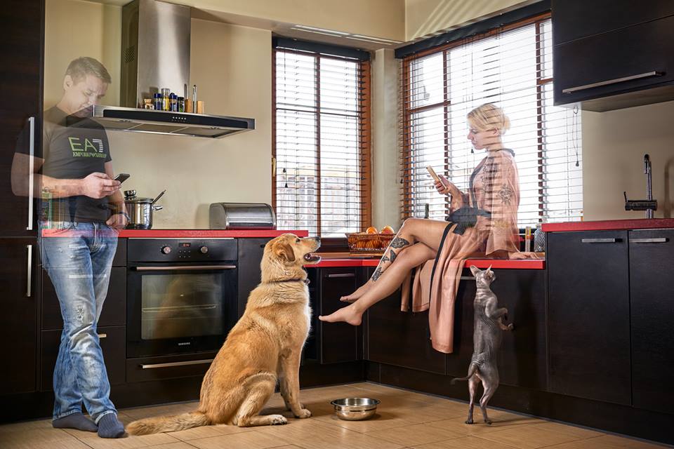 Дивімося на ці знімки і впізнаємо самих себе. Ось так ми нерідко разом обідаємо, прокидаємося, зустрічаємось з друзями і навіть укладаємо спати дитину...
